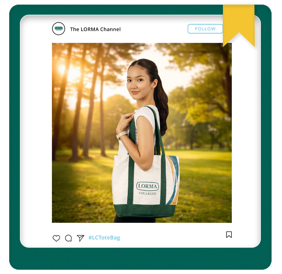 In celebration of our shared milestones and vibrant school spirit, the Limited Edition LORMA Colleges Tote Bag is now available on both campuses for only ₱300, thoughtfully designed as a functional and meaningful keepsake that lets you carry a piece of LORMA wherever you go; you may purchase it at the Bookstore in the CHS Campus or at the Business Office in the CLI Building for assistance.