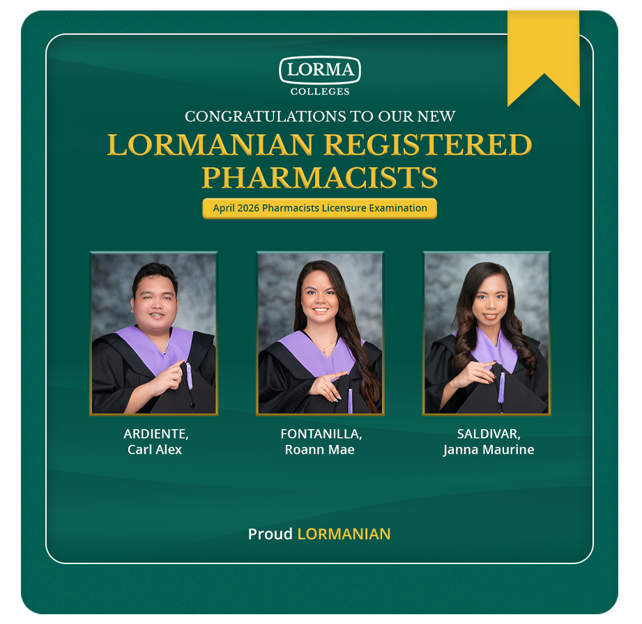 Congratulations to our new Lormanian Pharmacists whose success in the April 2026 Pharmacist Licensure Examination reflects the dedication, resilience, and passion they have poured into their journey in healthcare; as you step into a profession rooted in service, science, and compassion, may this milestone become the beginning of a meaningful path toward advancing wellness, supporting communities, and creating lasting impact through ethical and patient-centered care—LORMA Colleges proudly celebrates your achievement and the excellence you carry into the future of healthcare.